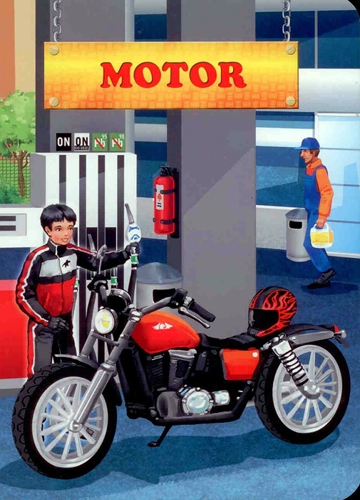Wspaniała książeczka z kolorowymi ilustracjami, dla najmłodszych czytelników, o Radku i jego pracy z motorem.
